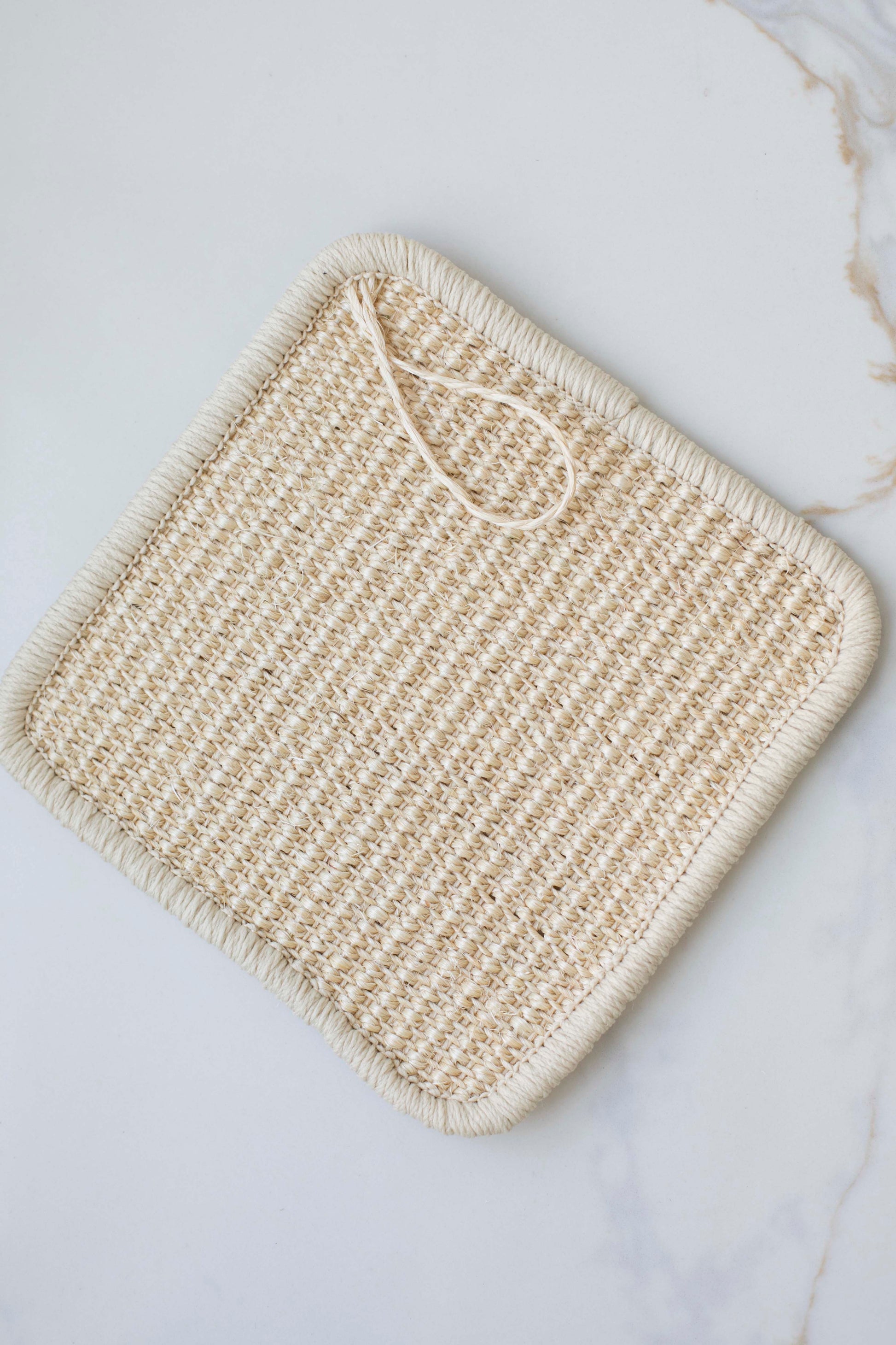 These rectangular pot holders are woven from natural fibers. They have loops for easy hanging and provide good protection against heat when handling hot cookware.